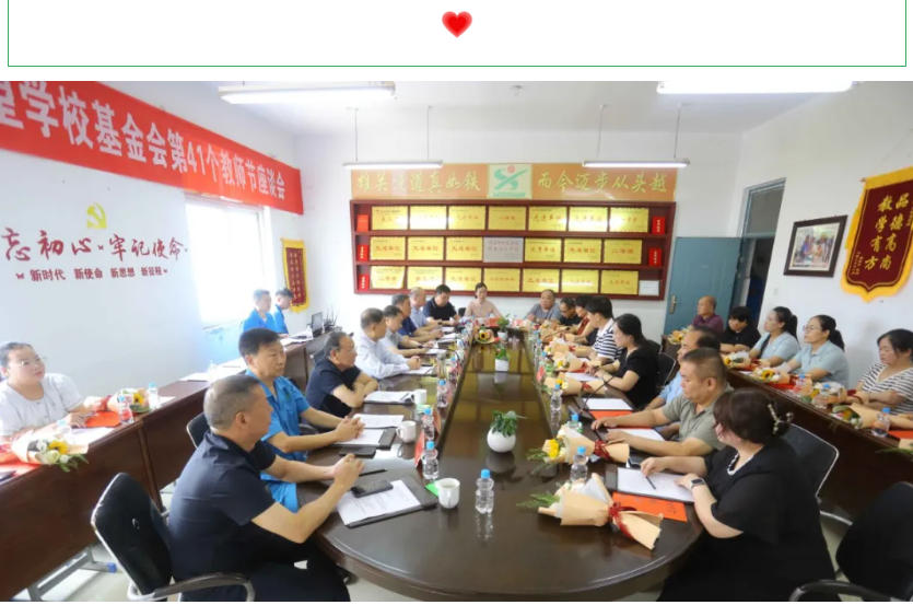 9月10日,在第41个教师节到来之际,河南森源集团、榆林森源希望学校基金会举行教师节座谈会,森源集团党委书记、基金会理事长楚金甫,森源集团常务副总裁、基金会副理事长杨合岭,河南森源电气股份有限公司董事长、基金会理事赵中亭,后河镇党委政府、后河镇中心学校、基金会及榆林村委相关领导出席座谈会。