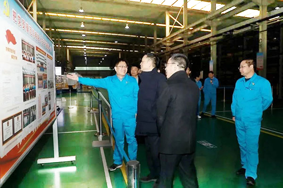郑砚国一行参观了森源展厅,详细了解了企业的发展历程及产品装备在国家各重点工程中的应用情况。郑砚国一行还深入车间,走进企业生产一线,对我公司电气产品制造、党组织建设进行了参观,对企业先进的智能化生产设备、严谨的生产流程进行仔细观看。在座谈中,楚金甫首先向郑砚国一行的到来表示欢迎,并介绍了集团的整体发展情况。森源集团党委委员、森源电气党总支副书记张瑜霞详细介绍了企业近年来持续开展“五融”党建工作法所取得的成就。