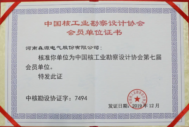 与行业共舞!森源电气入选中国核工业勘察设计协会会员单位