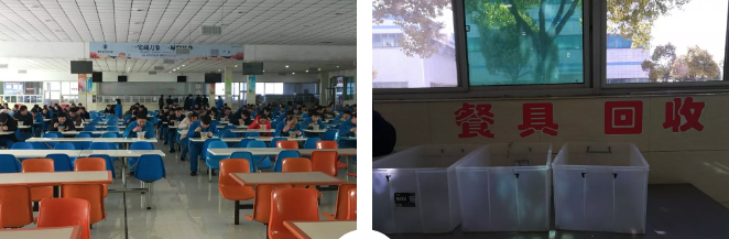 员工就餐实行统一配餐,统一使用一次性餐具,一人一桌,错峰进行,并及时做好厨余垃圾消毒处理。同时,一日三次对餐厅卫生进行综合整治,全面消毒,并留样备查,记录在案,自觉接受地方食品卫生监督部门监督。公司疫情防控及复工复产领导组成员不定时监督检查,发现问题,立即整改。