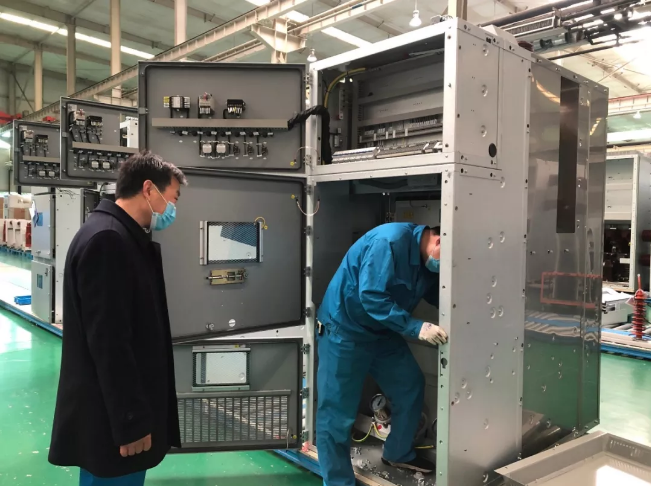 急客户之所急,是森源一直的坚守。公司领导立即联系相关人员召开网络会议,针对客户出现的实际问题进行紧急研判,同时安排技术专责朱世杰和售后专责张浩帅前去现场了解情况。最终根据现场反馈和技术研讨,在公司没有复工的前提下,只能通过对其他项目合同和库存产品进行拆改,才能解决客户的燃眉之急。13日下午5点,成套公司总经理司贞员按照市委市政府对疫情防控的要求,协调安排部分人员经过登记、测温、全身消毒、全程佩戴口罩等防范措施后返回工作岗位。在成套公司副总经理胡占楼的组织安排下,他们找元件、做母线、拆改柜体、改二次,加班加点,保证2月17日交付使用。截止发稿时间,5面10kV开关设备已经完成装配检验,完全具备客户要求明天发货的一切条件。