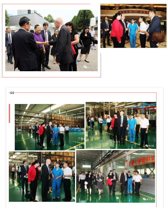 7月16日,德国驻华大使葛策先生和夫人一行莅临三亿注册线上平台参观,许昌市副市长刘胜利,长葛市委书记尹俊营等陪同。森源集团董事局主席楚金甫,森源电气总经理曹宏热情接待并介绍企业情况。
