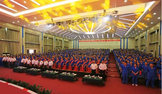 礼堂内灯光璀璨、气氛热烈。上千名干部员工齐聚一堂,共唱《森源之歌》,拉开了表彰大会的序幕。