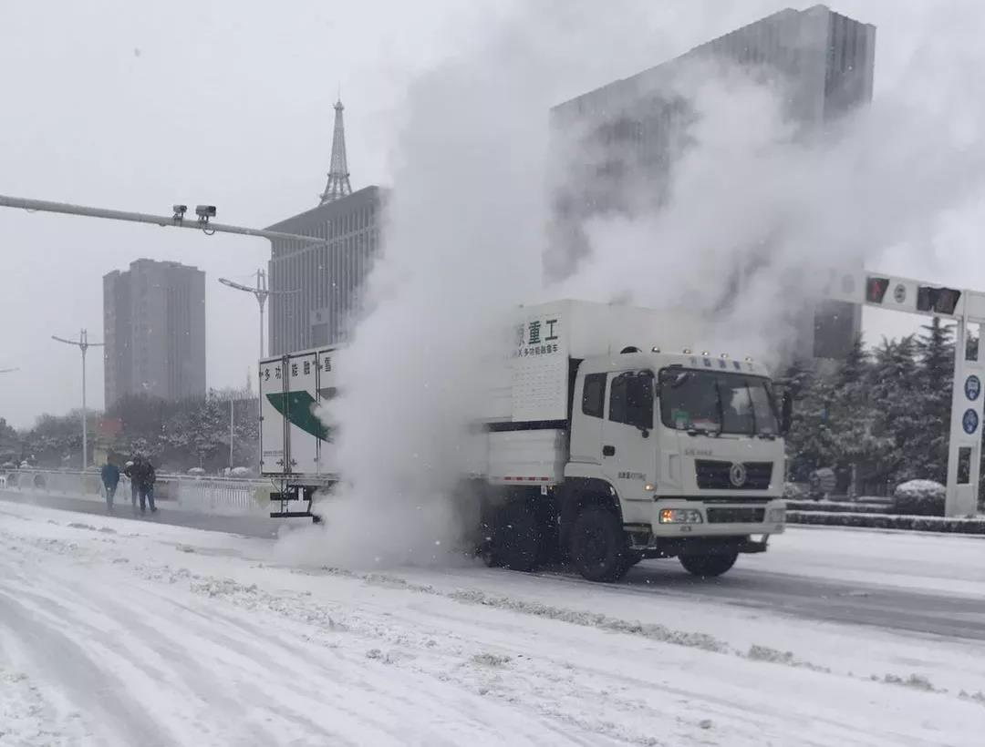 近日,突如其来的一场大雪将中原大地带进了银装素裹的世界。就在早起的市民们为出行忧心的时候,他们却惊奇的发现今年的情况似乎与往年有所不同:明明屋顶上的积雪已是厚厚的一层,偏偏道路上的雪花看上去却似乎是刚刚落下。不远处,一辆辆森源牌多功能融雪车正在不知疲倦的工作着……