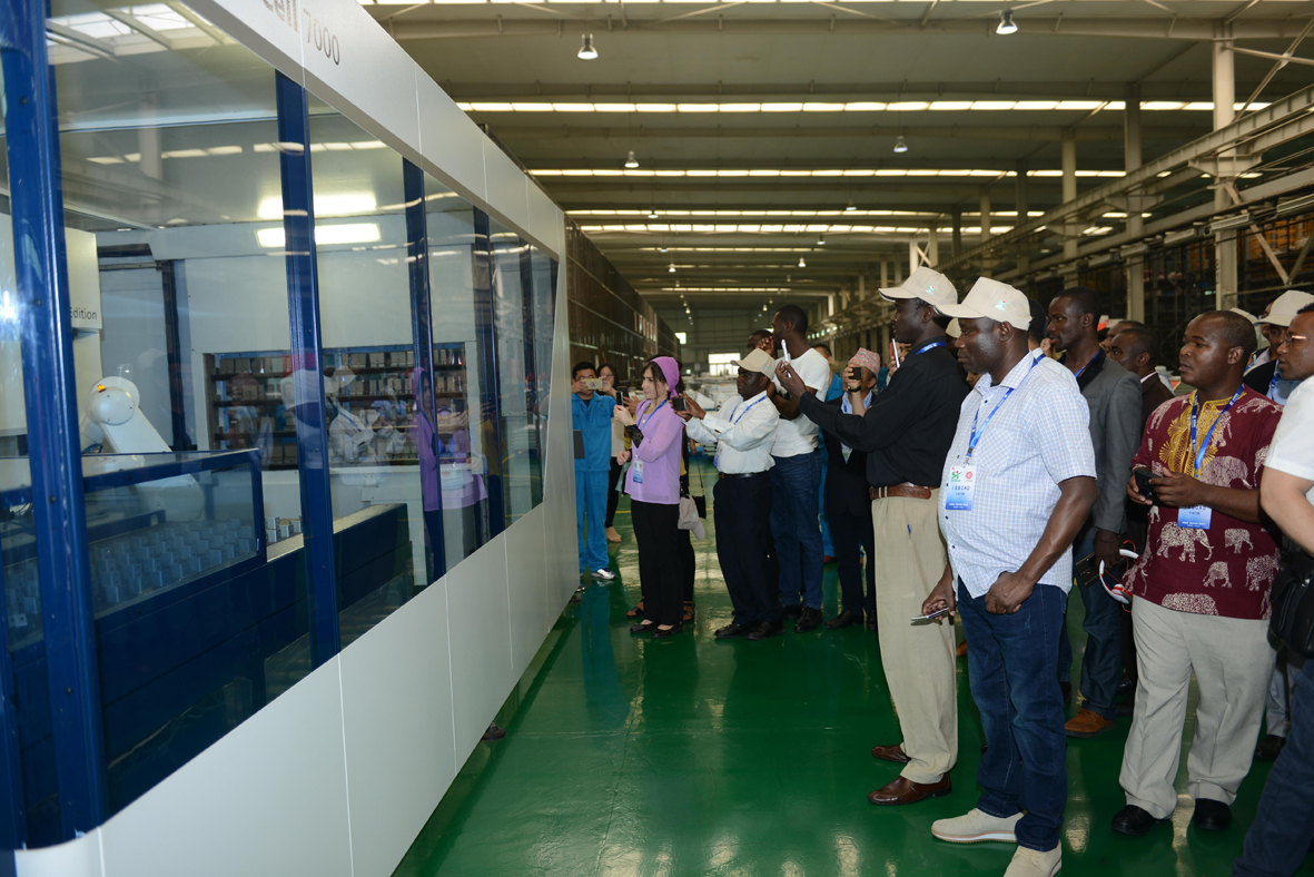 在车辆制造板块,访问团实地观摩了公司电动、环卫、工程三大系列产品的现场路演:技术水平国内领先的纯电动乘用车,市场占有率70%的移动警务室,与欧美国家同步研发的自装卸垃圾车、多功能抑尘车,填补省内空白的50吨汽车起重机,当近百台各种类型的车辆整整齐齐的从访问团面前驶过,现场气氛极为热烈。当路演结束,成员们纷纷涌向各自中意的车型,详细询问其功能参数,希望能够向自己的国家引进。