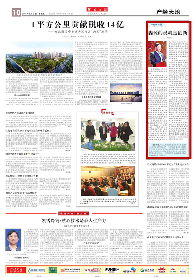 回顾森源集团的发展历程,可以看到,创新是主题,创新是发展的源泉,创新是成功的保障,创新更是企业发展的灵魂所在。未来,我们将继续加大创新力度,为中国梦的实现做出更大的贡献!(作者系河南森源集团董事局主席)
